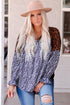 Animal Print Color Block V-Neck Flounce Sleeve Blouse