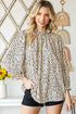 Animal Print Ruffle Collar Flounce Sleeve Blouse