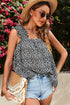 Ditsy Floral Ruffled Square Neck Sleeveless Tank