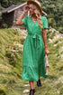 Printed Tie-Waist Short Puff Sleeve Surplice Dress