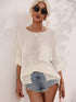 Boat Neck Cuffed Sleeve Slit Tunic Knit Top