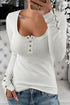 Looking for a feminine-yet-comfy top? Our Button Front Scoop Neck Top is just the thing. This lovely top has a flattering scoop neck, button cuffs, and long sleeves. An easy style to wear with denim, pants, or skirts.