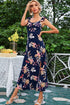 Floral Print Sleeveless Square Neck Slit Midi Dress