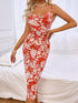 Floral Print Tie Back Cowl Neck Sleeveless Midi Dress