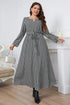 Plus Size Notched Neck Houndstooth Tie Belt Maxi Dress