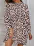 Printed Frill Neck Long Sleeve Dress
